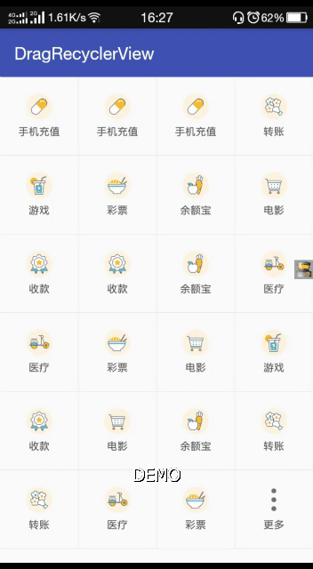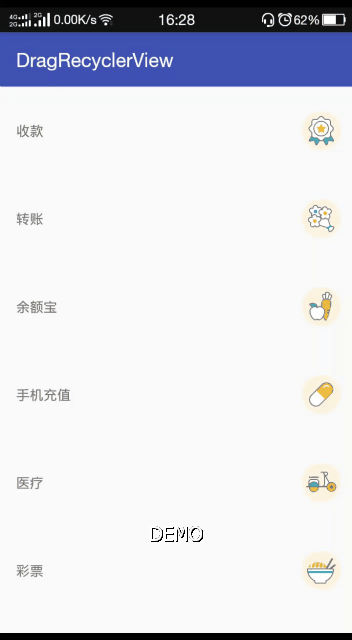 OK,这样就完成了Item的拖拽排序,简单看下现在的效果: