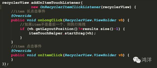 接着我们给RecyclerView添加item长按事件,判断item是否是最后一个(最后一个是“更多”),不是则开始拖拽。