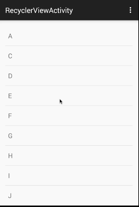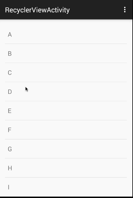 但是,我们都知道RecyclerView并没有提供OnItemLongClickListener,这个问题我们已经在上一篇推送的文章中给出了解决方案,就是使用OnItemTouchListener,然后识别触摸手势,这里给上传送门:RecyclerView添加ItemClickListener的方案,我就直接使用上一篇的成果,不重复讲了(这里你可以使用直接的OnItemClickListener的方案):