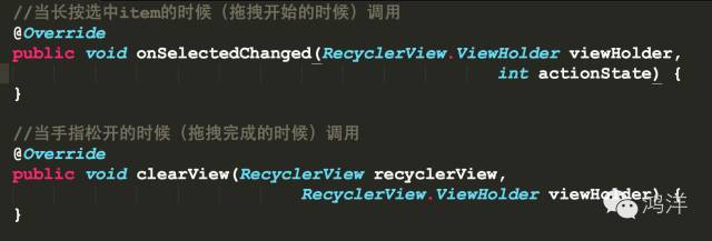 但是拖拽的时候我们拖拽的对象不能高亮显示,这是不友好的,我们希望拖拽的Item在拖拽的过程中背景颜色加深,这样就需要继续重写下面两个方法: